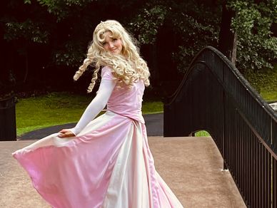 Our Sleeping Princess is as lovely as a the red rose. She would love to make an appearance at your next event. Just make sure there are no spindles for her to prick her finger on.